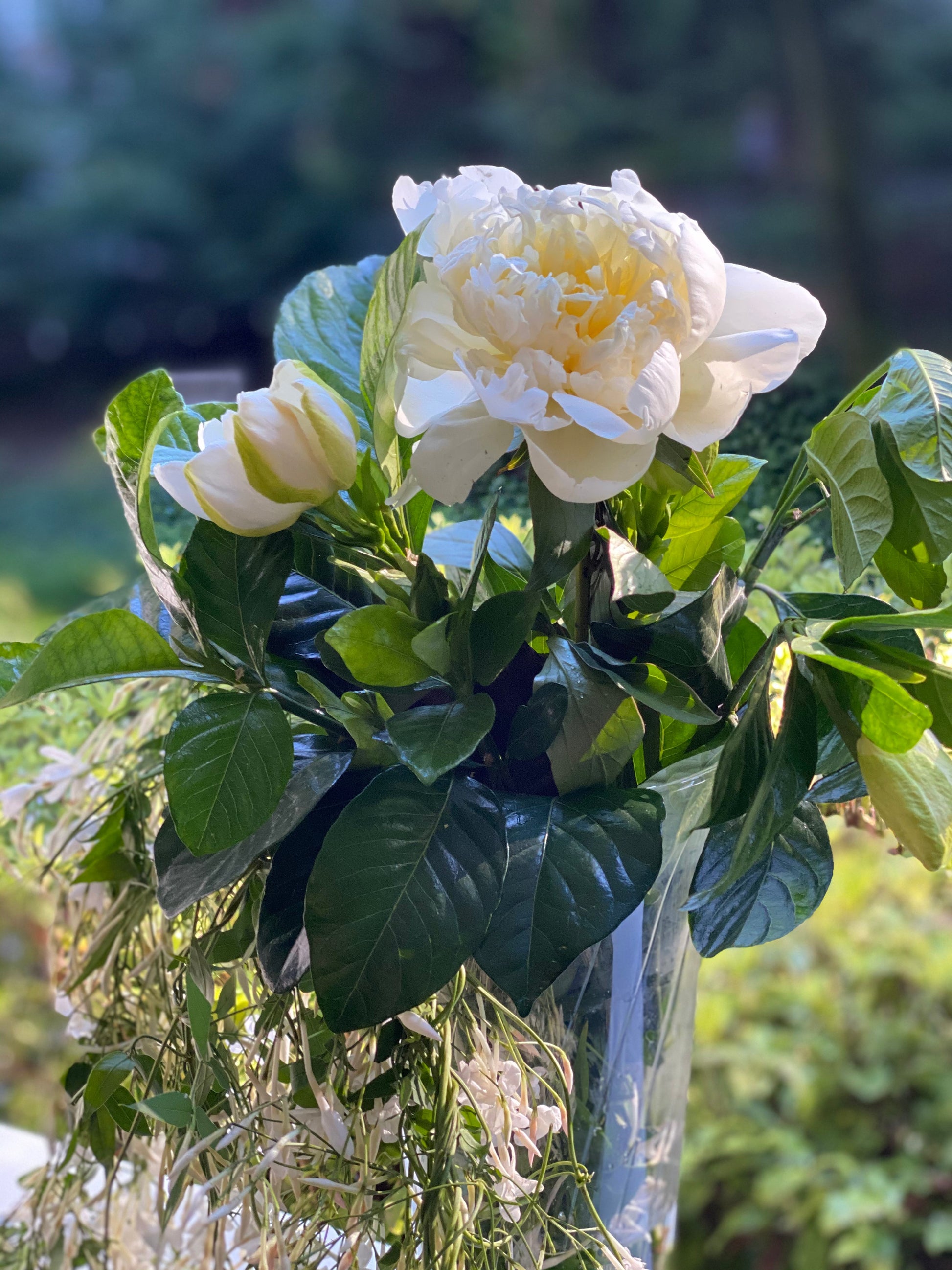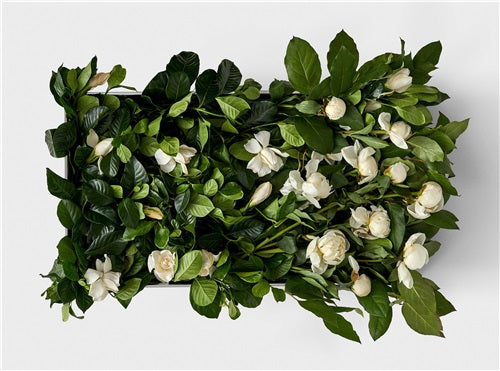 We have included Seasonal greens with your Gardenias to celebrate the season and create an ethereal feel with whispering vines and leaves.